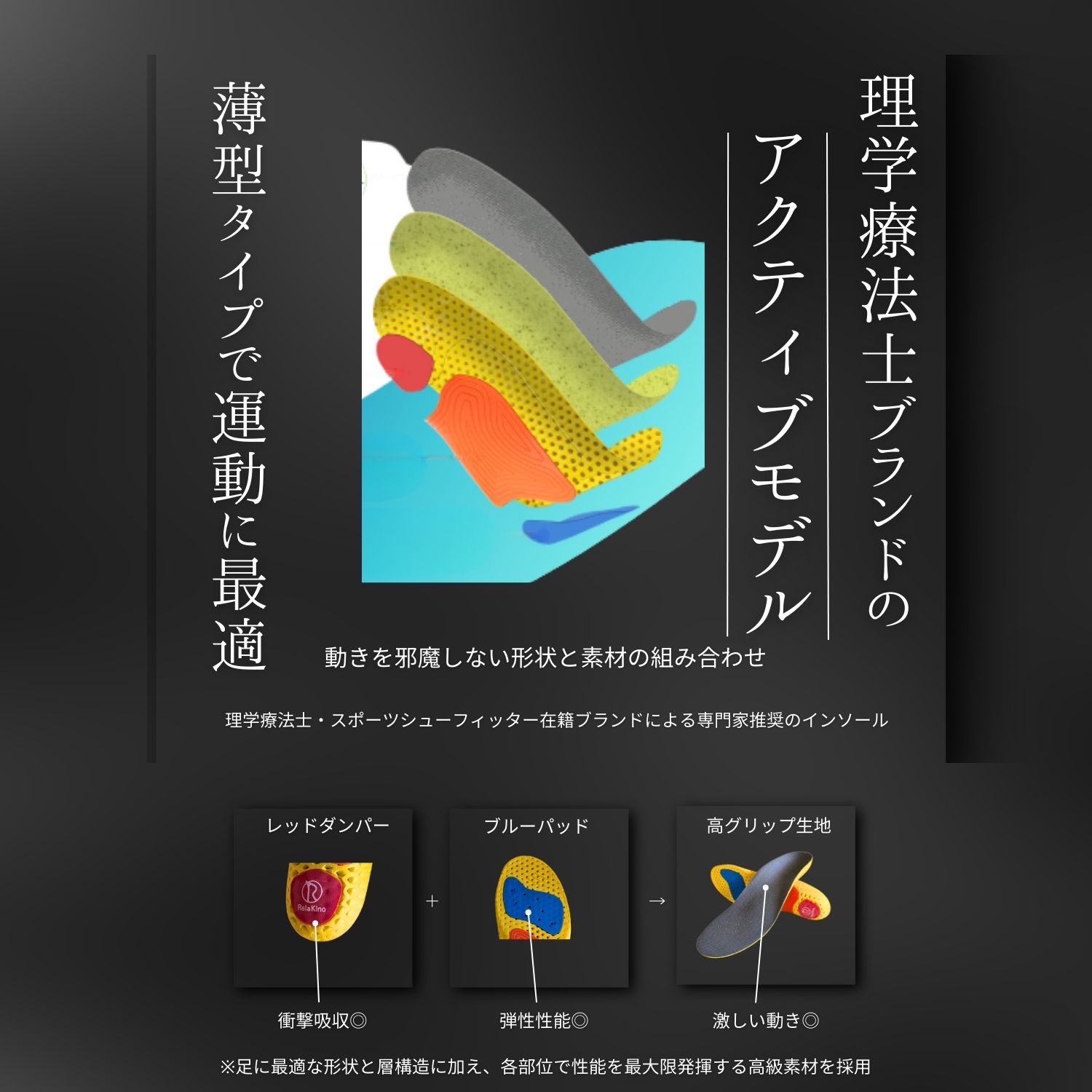 Rela Kino モーション インソール【理学療法士ブランド上位モデル】薄型 スポーツ 疲れない 衝撃吸収 中敷き 高グリップ アーチ 運動 ランニング サッカー 軽量