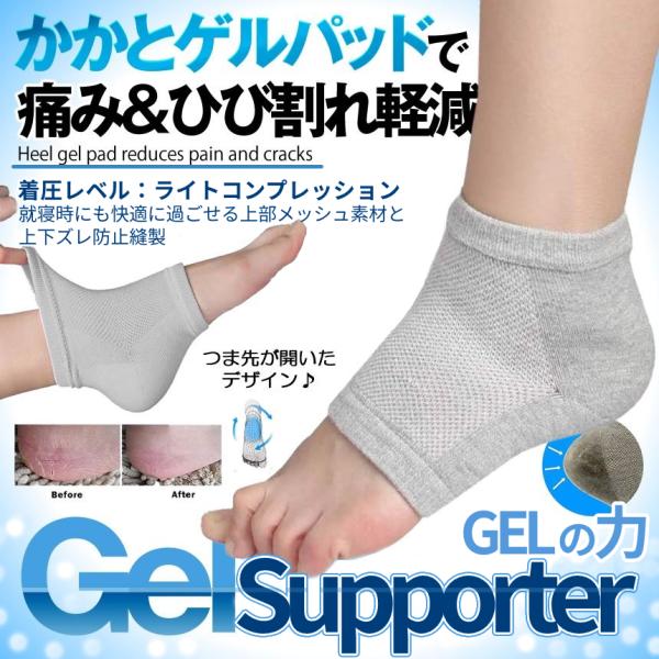 かかと ケア ドライ ヒール ソックス 左右 2足 セット ゲル サポーター 痛み ひび割れ 軽減 保湿 ジェル 踵 シリコン ジェルソックス 靴下 女性 男性 2-KAKAGERU