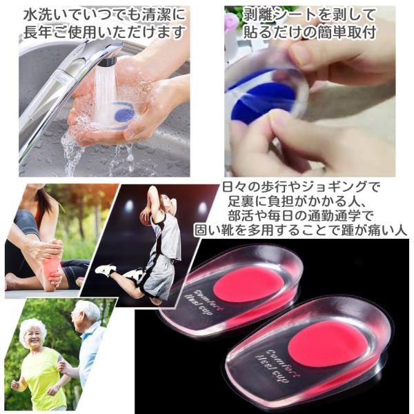 かかと インソール やわらかい 2枚 セット ジェル 中敷き 中敷 衝撃 吸収 体圧 分散 痛み 立ち仕事 シリコン クッション 踵 ヒールカップ シークレット BUNJELSI