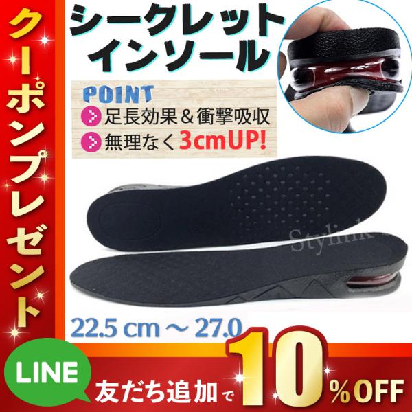 中敷 インソール 身長アップ 靴 中敷き インソール3cm 3センチ エアー クッション 無理なく 衝撃吸収 足長効果 厚底 シークレットインソール