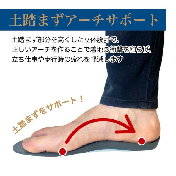 インソール 疲れない 衝撃吸収 中敷き 立ち仕事 ウォーキング スポーツ 衝撃分散 土踏まず アーチサポート グレー 1足入り