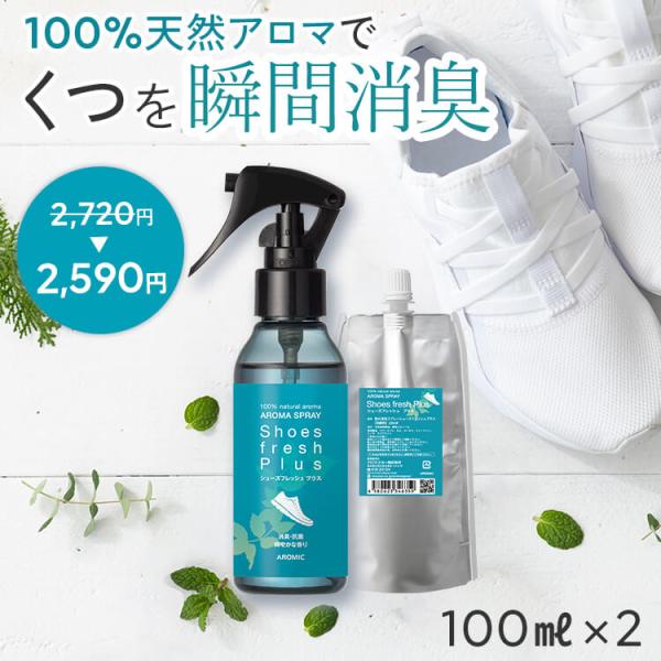天然アロマ 靴 消臭スプレー 最強 消臭剤 消臭グッズ 匂い消し 足 臭い 対策 消臭 除菌 アロミックスタイル シューズフレッシュプラス 100ml+100ml 詰め替え