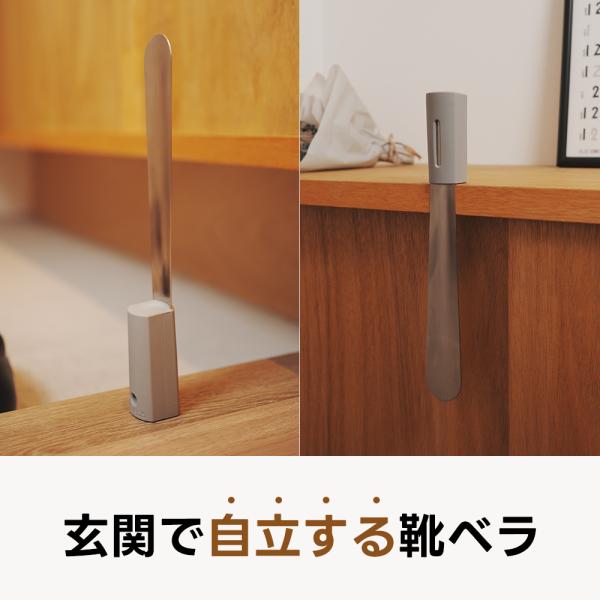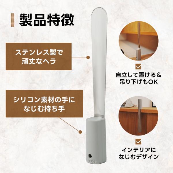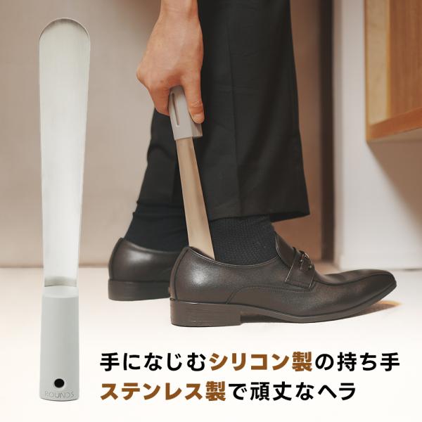 ROUNDS 自立する靴ベラ 手になじむシリコンの持ち手 ステンレス製で頑丈なヘラ 父の日プレゼント用