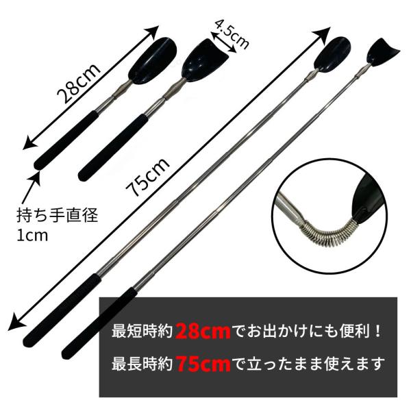 靴べら 伸縮性 1本 携帯 携帯靴べら シューホーン ロング ショート プラスチック製 靴ベラ 玄関用品 靴ケア用品 伸びる くつべら 最短約28cm 最長約75cm