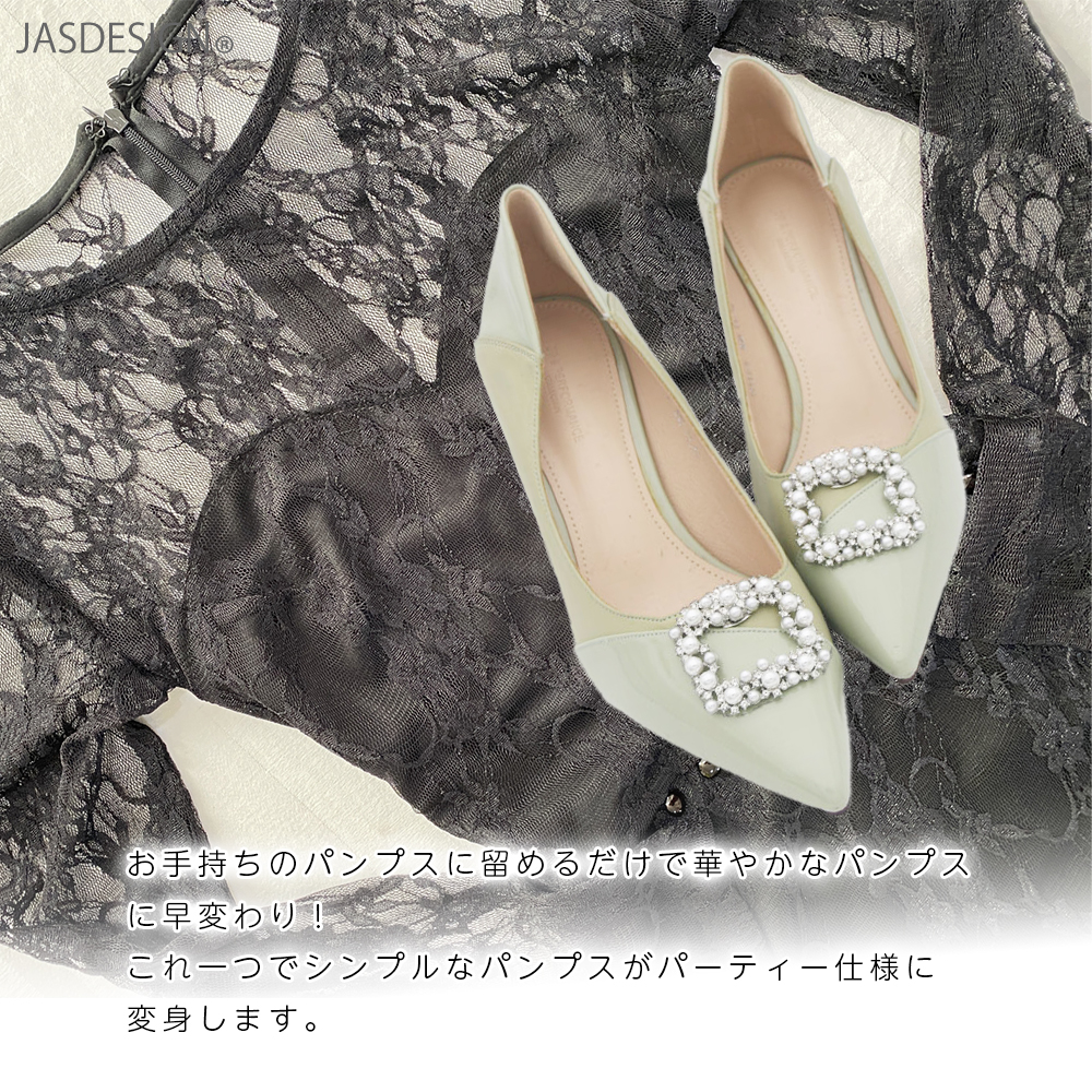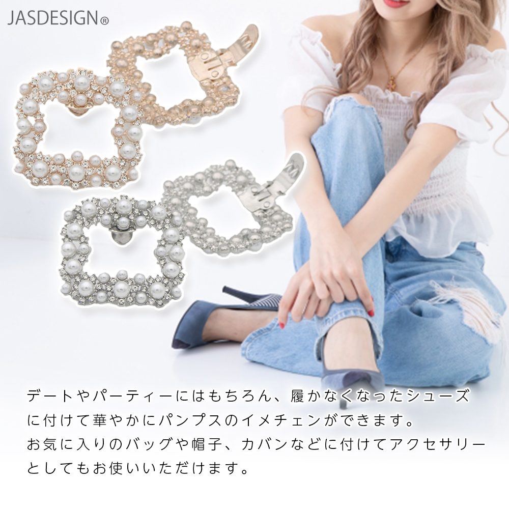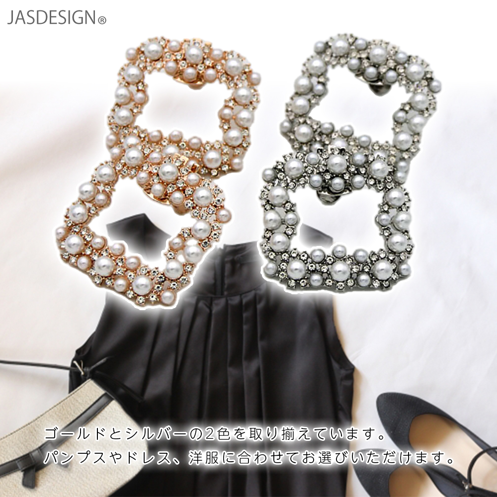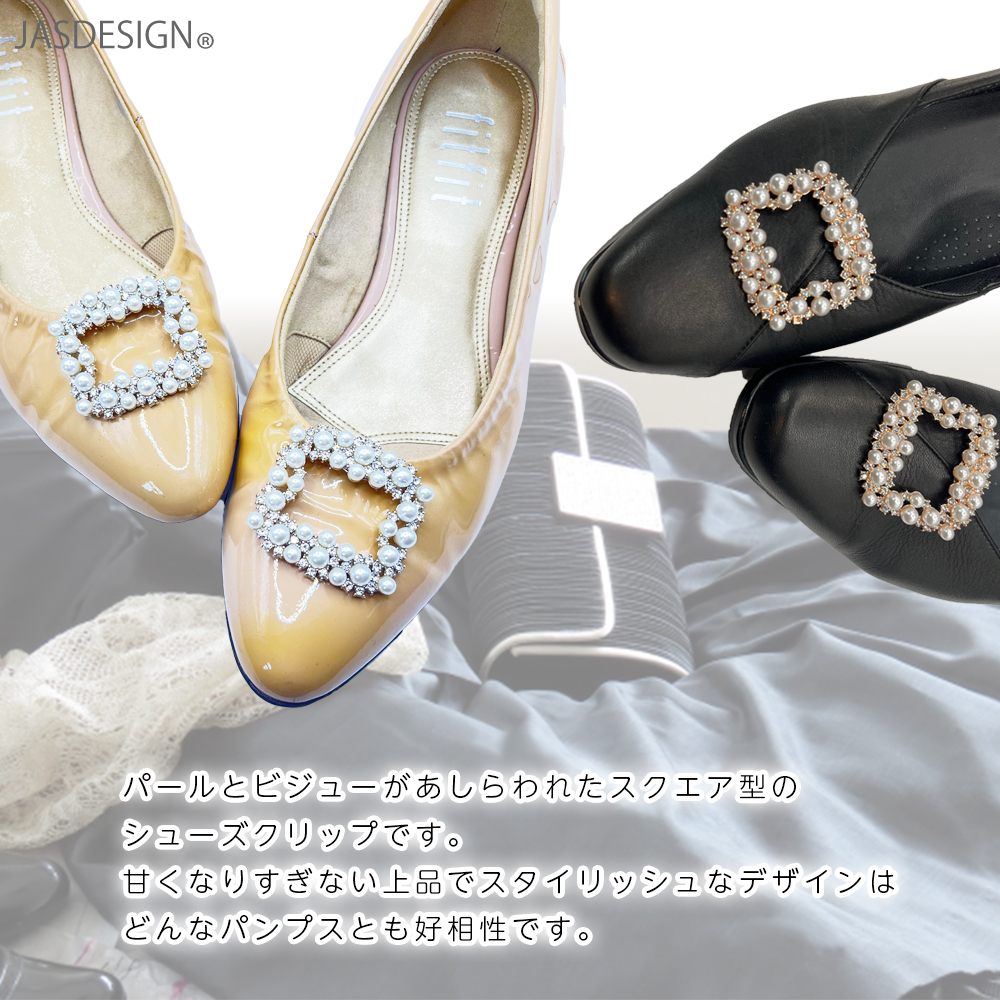 シューズクリップ ビジュークリップ パンプスクリップ シューズアクセサリー 靴クリップ 結婚式 ウェディング スクエア ビジュー パール ラインストーン JM-361
