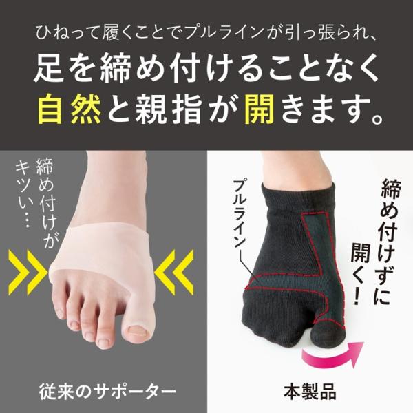 外反母趾サポーター ひねりの効いた外反母趾サポーター 1足組(2枚入)左右兼用 靴下 矯正 ソックス 親指 付け根 痛い 足指 広げる グッズ レディース メール便