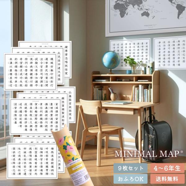 小学高学年 漢字ポスター【防水】A3 9枚組|お風呂で学べるシンプルモノトーン学習ポスター|MINIMAL MAP