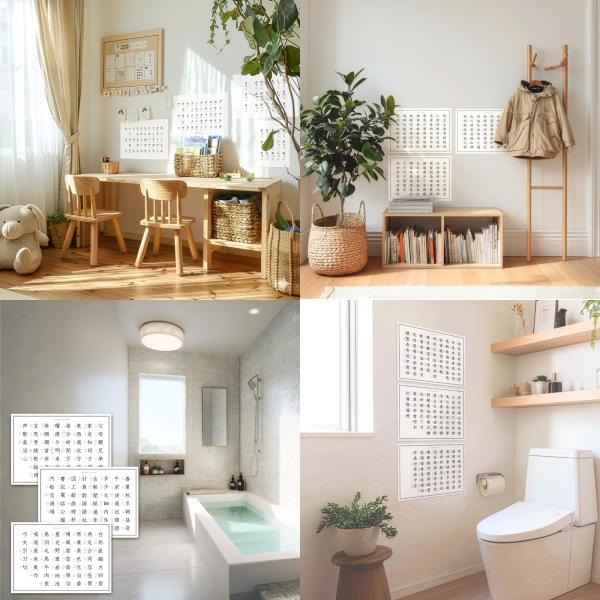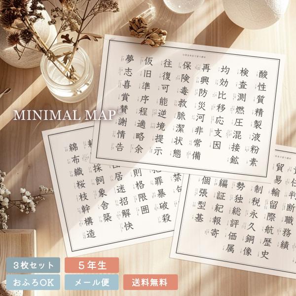 小学5年生 漢字ポスター【防水】A3 2枚組|お風呂で学べるシンプルモノトーン学習ポスター|MINIMAL MAP