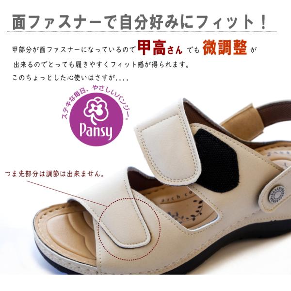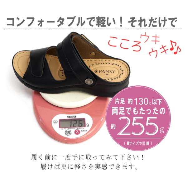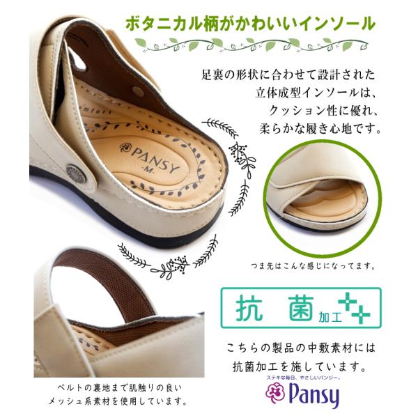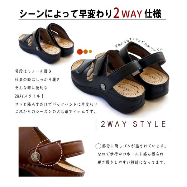 Pansy パンジー サンダル レディース 2way つっかけ バックバンド 軽い コンフォート 面ファスナー ウエッジ オープントゥ 仕事 ワンマイル 脱ぎ履きしやすい 3e