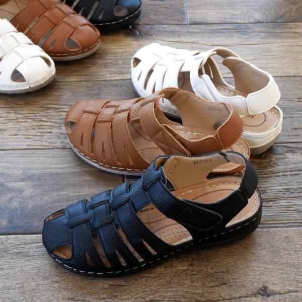 グルカサンダル レディース バックストラップ 面ファスナー ベルクロ 幅広 3E 歩きやすい RELAXIS オープントゥ 軽量 ふわふわクッション 屈曲 柔らかい