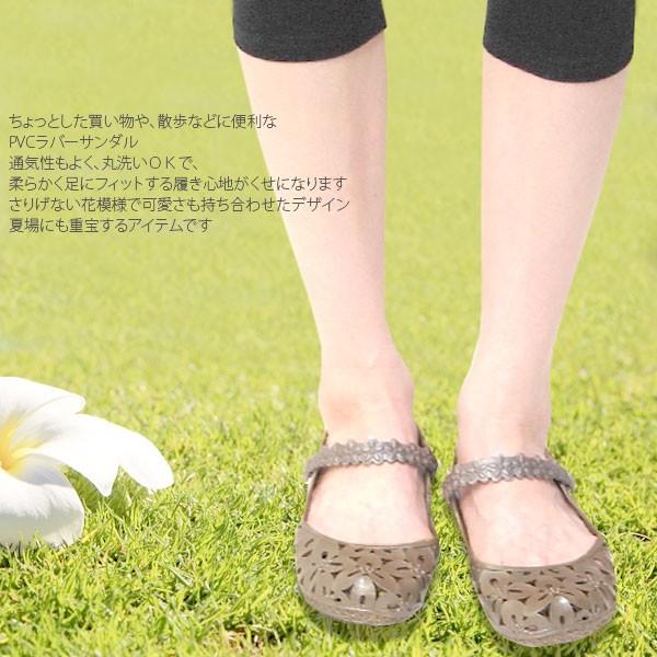 サンダル ラバーシューズ パンプス ぺたんこ PVC素材 軽量 ローヒール 花柄 フラワー PRD