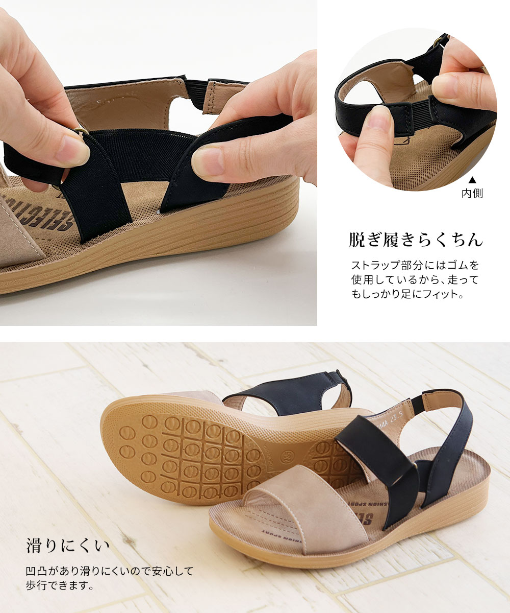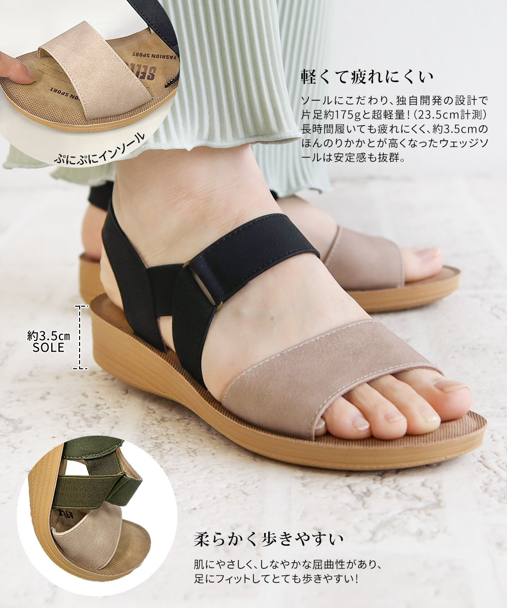 サンダル レディース おしゃれ 疲れない ゴム 軽量 走れる 痛くない 歩きやすい オープントゥ バックベルト ウエッジソール カジュアル シンプル 夏 744 爆買