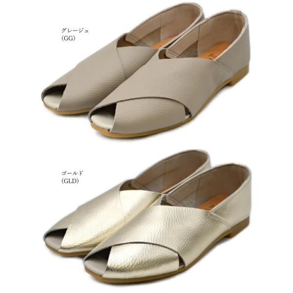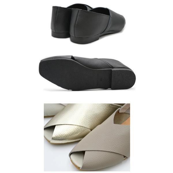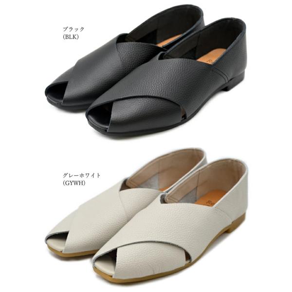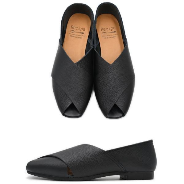 Recipe レシピ クロスベルトシューズ RP-544 日本製 本革 レザー フラット パンプス オープントゥシューズ レディース 歩きやすい