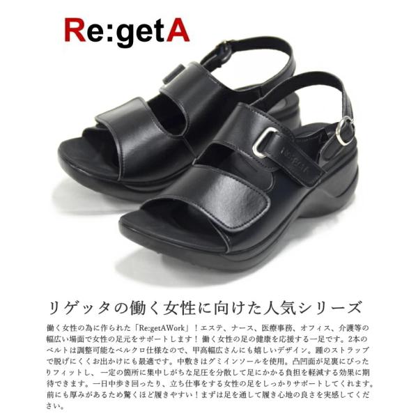 Re:getA Work リゲッタワーク リゲッタ サンダル RW-1001 バックベルト オフィスサンダル ナースサンダル コンフォート エステ 歩きやすい 黒 ブラック