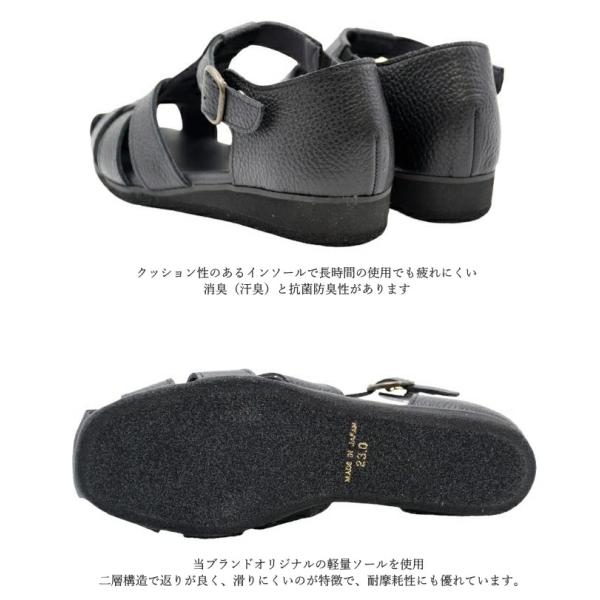 Figurino フィグリーノ 幅広 3E 本革 グルカサンダル SP209 日本製 軽量 甲高 ワイズ ゆったり リラックス レザー 牛革 レディース 靴