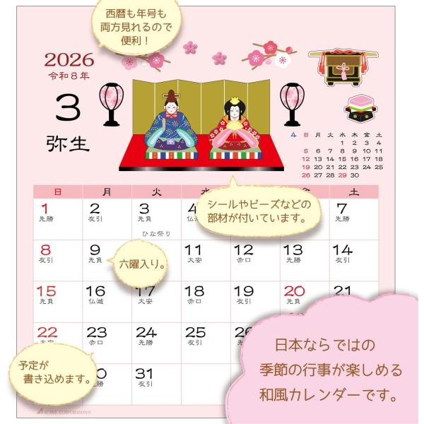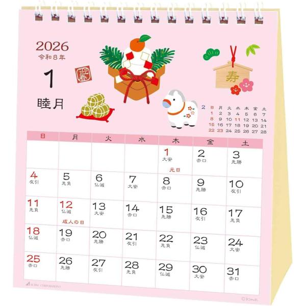 アクティブコーポレーション 2026 カレンダー 卓上 和風ハンドメイド 春夏秋冬 26ACL-552 2026年 1月始まり