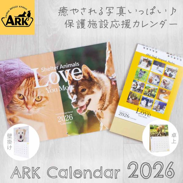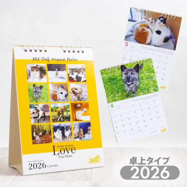 ARK アニマルレフュージ関西 卓上カレンダー 2026 アーク 保護犬 保護猫 写真 ボランティア 動物保護 寄付 メール便OK