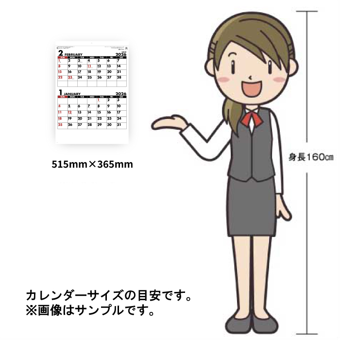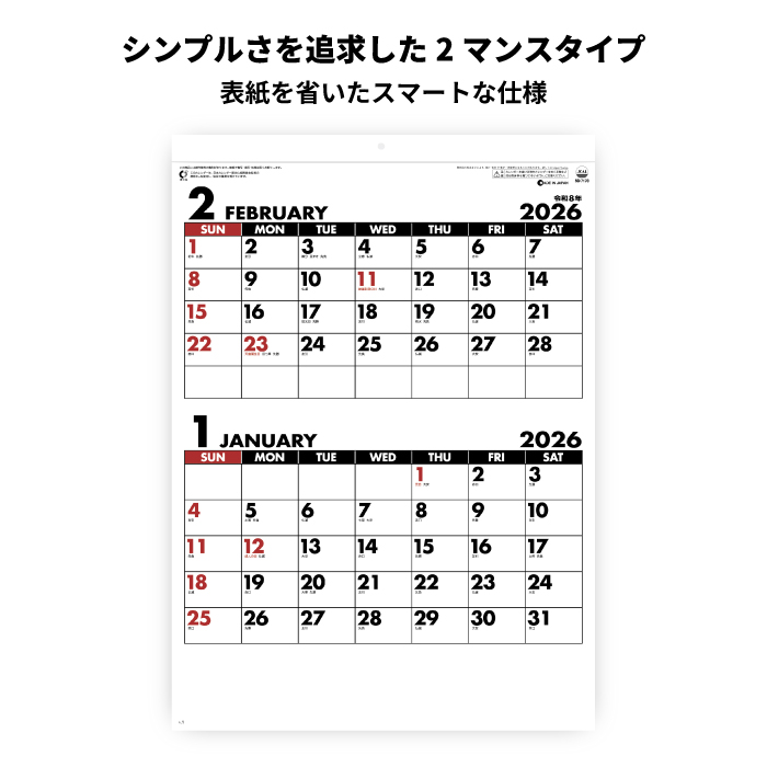カレンダー 2026年 壁掛け シンプルスケジュール 2マンス SG7170 2026年版 カレンダー 壁掛け おしゃれ シンプル 2ヶ月 ツーマンス 258166