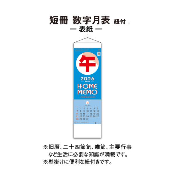 カレンダー 2026年 壁掛け 短冊数字月表 SG101 カレンダー 2026 壁掛け シンプル おしゃれ 小さい 短冊形 スケジュール 257947