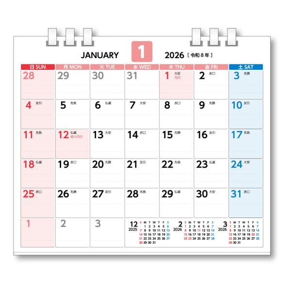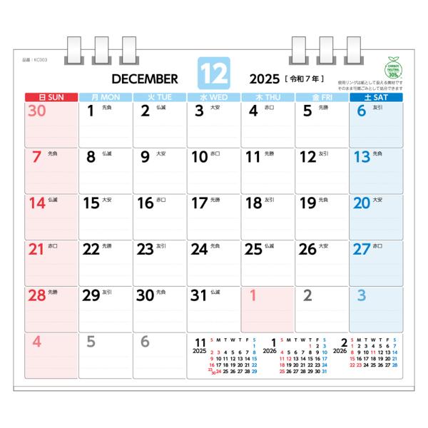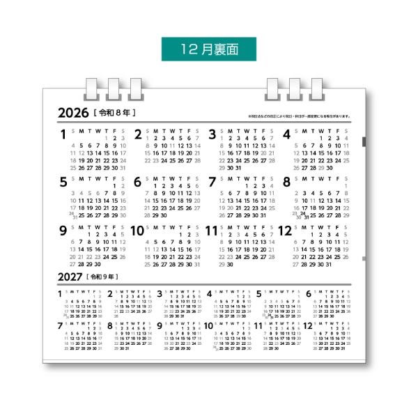 2026年 卓上カレンダー 12月始まり6週表記カレンダー 1部 キングコーポレーション カレンダー 卓上