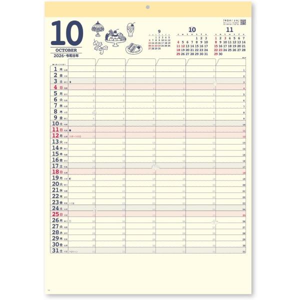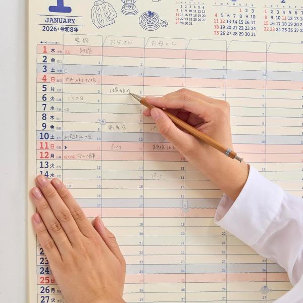 【土日祝も発送可】 2026年 壁掛けカレンダー 家庭のスケジュール 535×380mm NK80