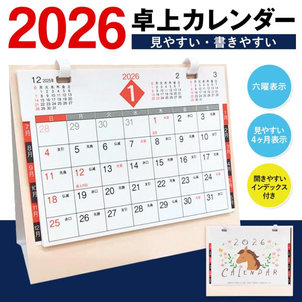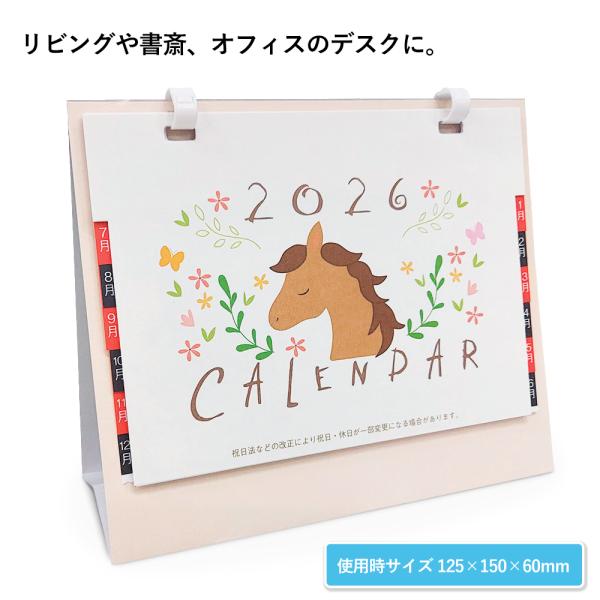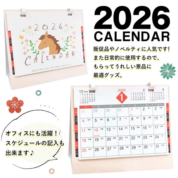 2026年 卓上カレンダー 午年 スケジュールを書ける 干支 うま年 馬 ウマ 令和8年 便利 インディックス付き 見やすい ノベルティ 送料無料 50K◇ カレンダー午