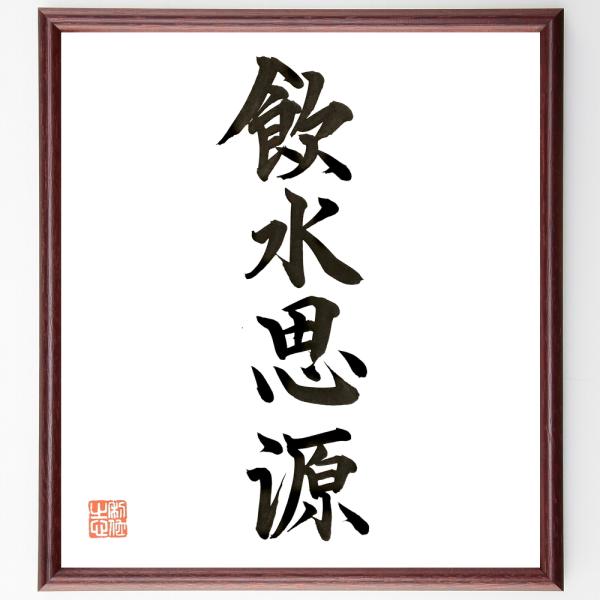 四字熟語「飲水思源」手書き書道色紙額/毛筆直筆済み