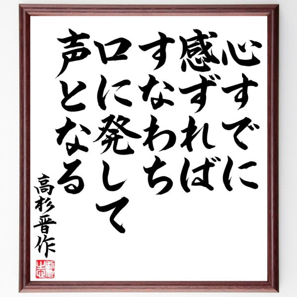 高杉晋作の名言「心すでに感ずれば、すなわち、口に発して声となる」手書き書道色紙額/毛筆直筆済み