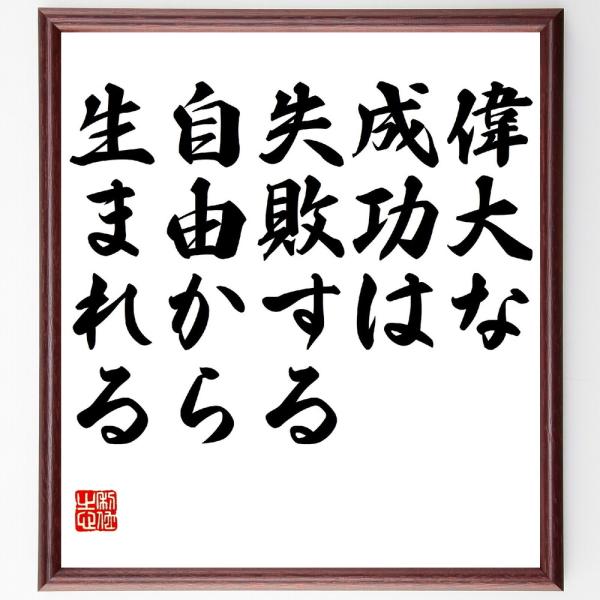 名言「偉大な成功は、失敗する自由から生まれる」手書き書道色紙額/受注後の毛筆直筆