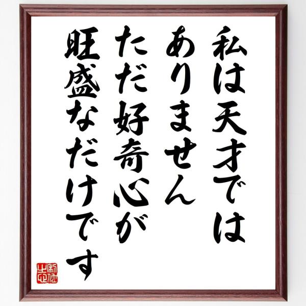 アインシュタインの名言「私は天才ではありません、ただ好奇心が旺盛なだけです」手書き書道色紙額/受注後の毛筆直筆