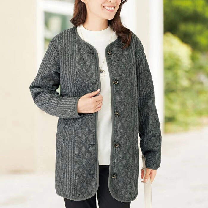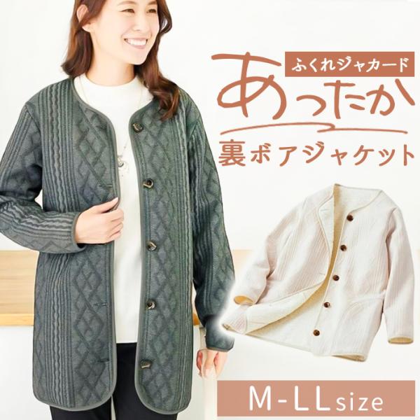 ジャケット レディース カジュアル 961503 通販 上着 羽織り 羽織 ロングジャケット レディースジャケット ロング丈 ロング 裏ボア ジャカード ジャケット