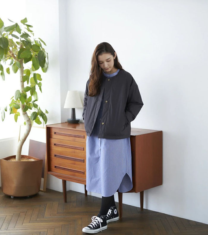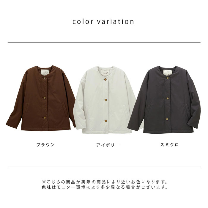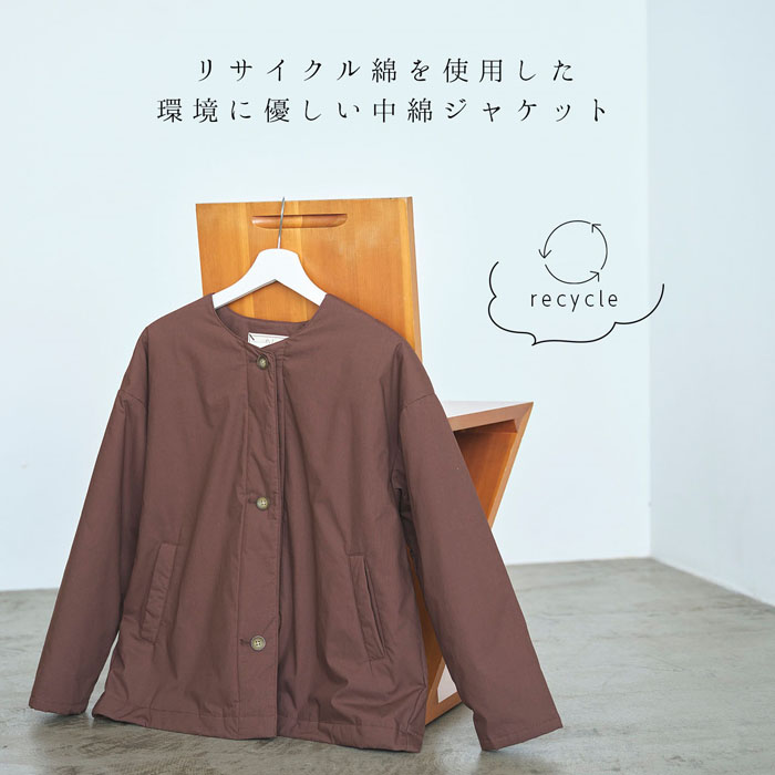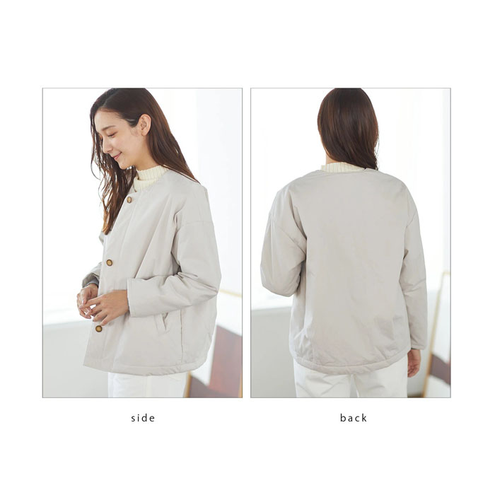 ノーカラージャケット レディース 秋 通販 ノーカラーコート 中綿コート ショート ジャンパー ブルゾン 環境に優しい ノーカラージャケット