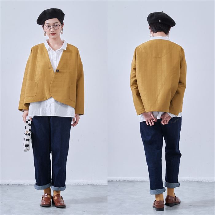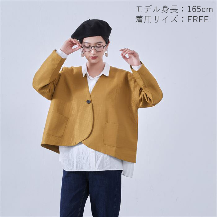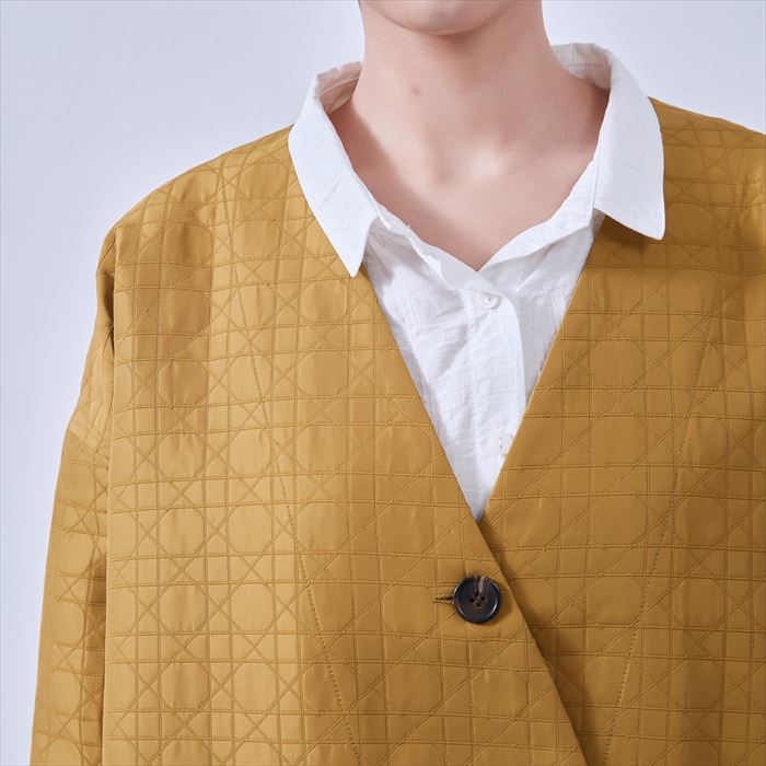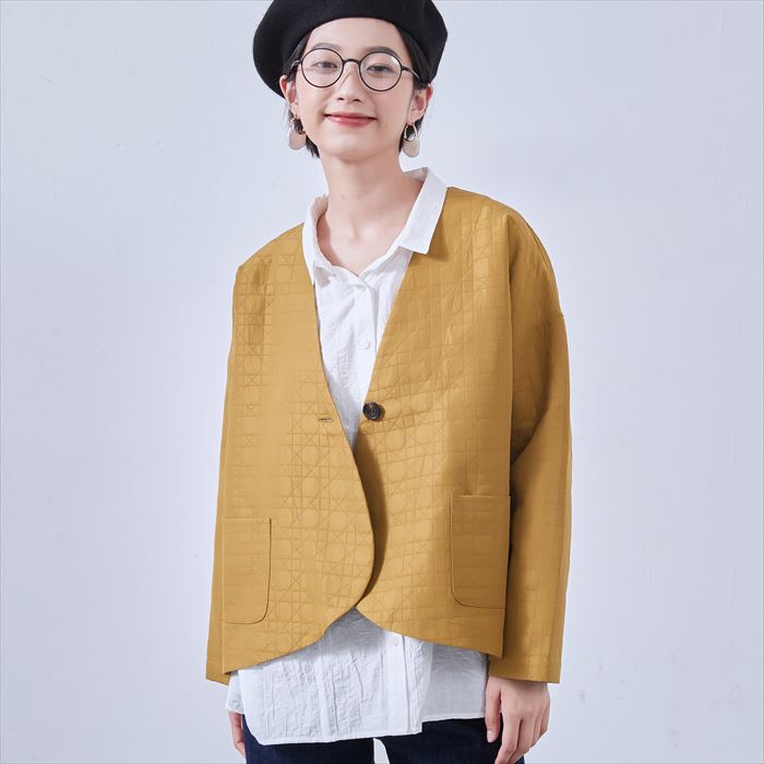 ノーカラージャケット レディース 通販 ジャケット アウター ラウンドヘム キルティング風 羽織り 羽織りもの 上着 秋 春秋 おしゃれ ノーカラージャケット