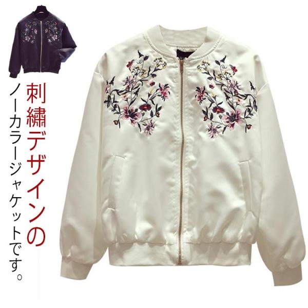 刺〓 ノーカラージャケット レディース MA-1 ジャケット フライトジャケット 羽織り ブルゾン 春秋 ジャンパー アウター エムエーワン ma-1