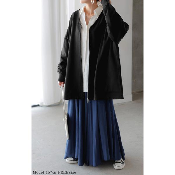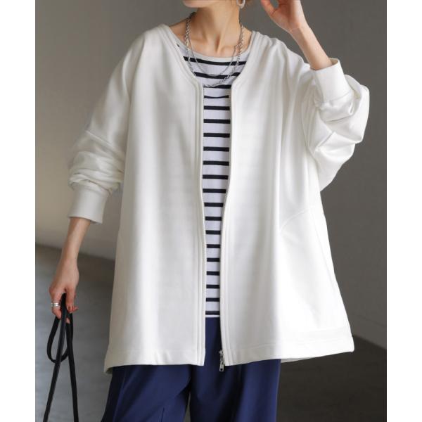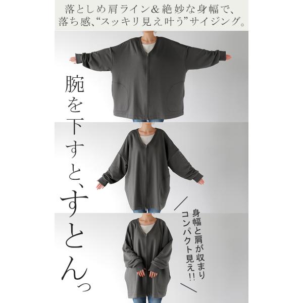 ジャケット スウェット ドルマン アウター レディース ロング 無地 羽織 Vネック ノーカラー UVカット ストレッチ ライトアウター チュニック オーバーサイズ