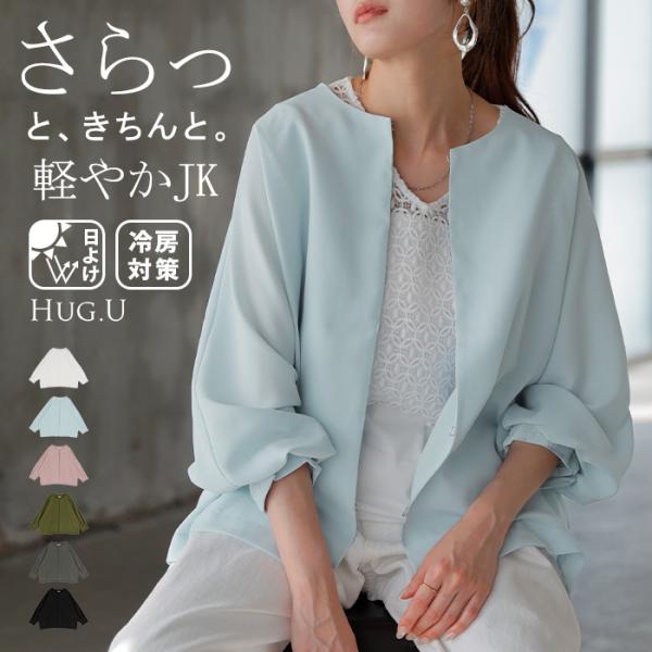 ジャケット ノーカラー アウター レディース ロング 無地 長袖 羽織 ライトアウター Uネック チュニック オーバーサイズ