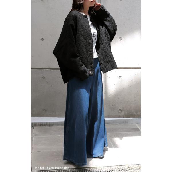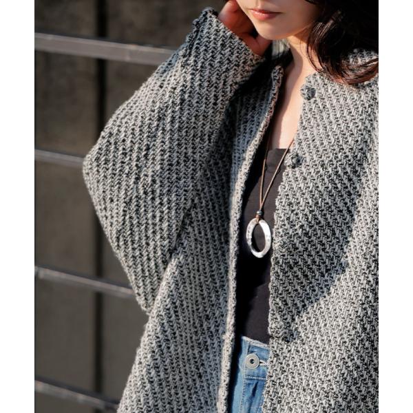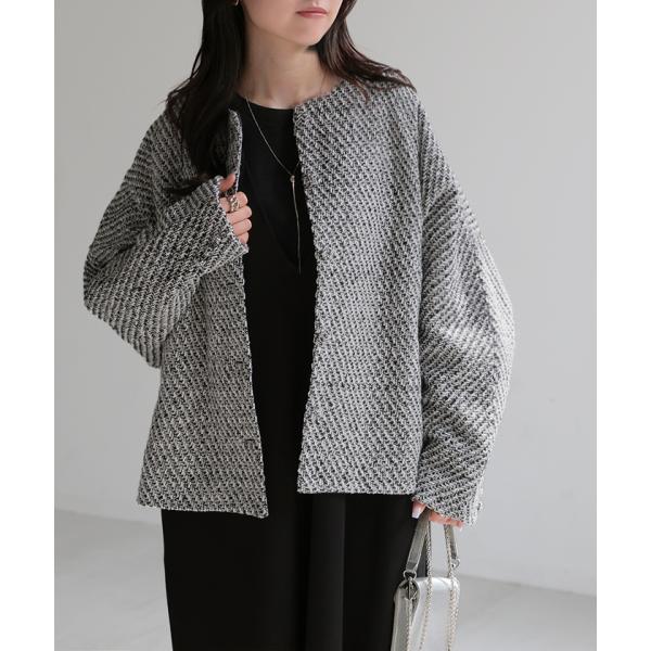 ジャケット ノーカラー ツイード ドルマン ワイド レディース ロング コートドルマンアウター 長袖 羽織