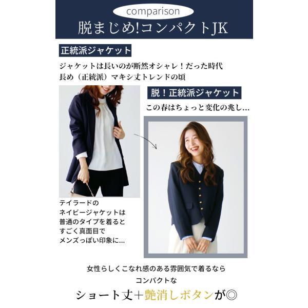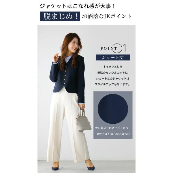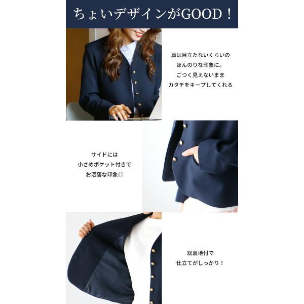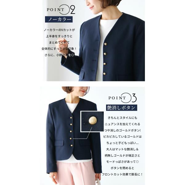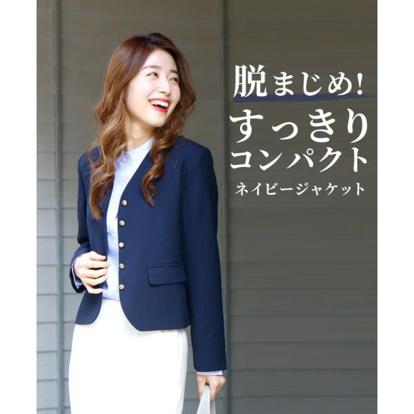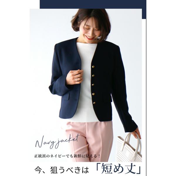 ジャケット ショート丈 コンパクト ボタン ノーカラー ネイビー Vカット ポケット 総裏地 卒業式 入学式 学校 行事 お仕事 オフィス レディース