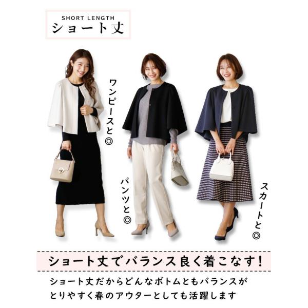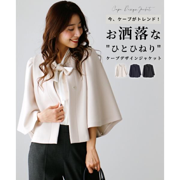 アウター ジャケット ケープ風 ケープデザイン ショート丈 ノーカラー 落ち感 抜け感 無地 きれいめ ベージュ ネイビー ブラック