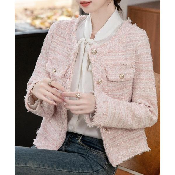 ジャケット ノーカラージャケット ツイードジャケット レディース
