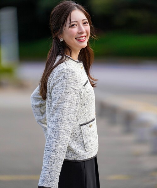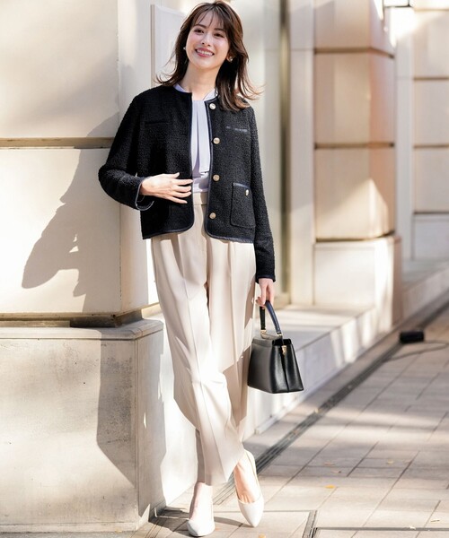 ジャケット ノーカラージャケット ネップツイード ジャケット レディース