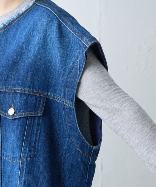 デニムジャケット gジャン 「アップデート/袖取り外し可能」柔らかデニムジャケット レディース