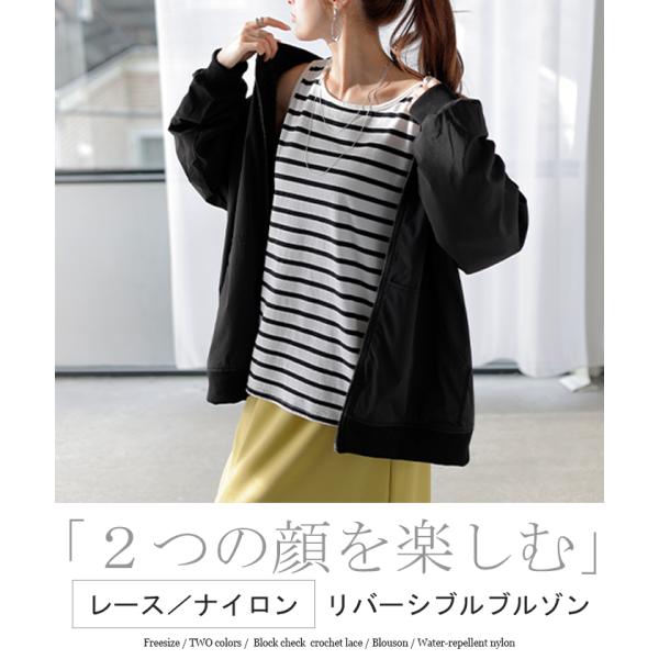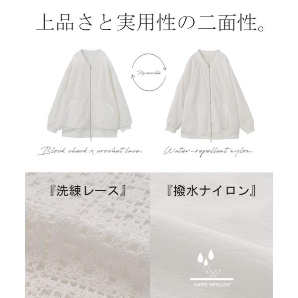 ブルゾン レース 撥水 リバーシブル レディース アウター ロング ナイロン ジャケット ジャンパー 羽織
