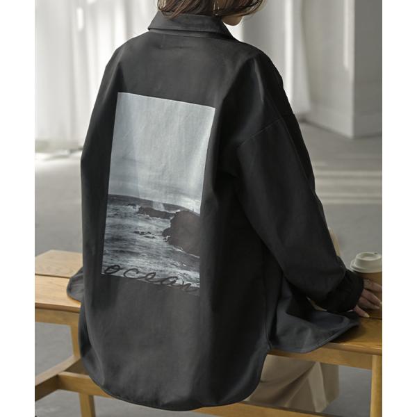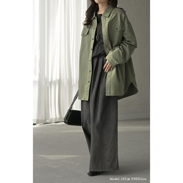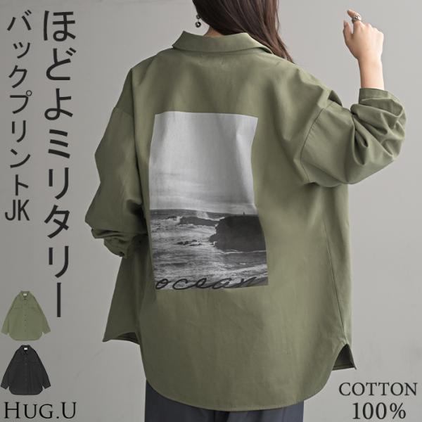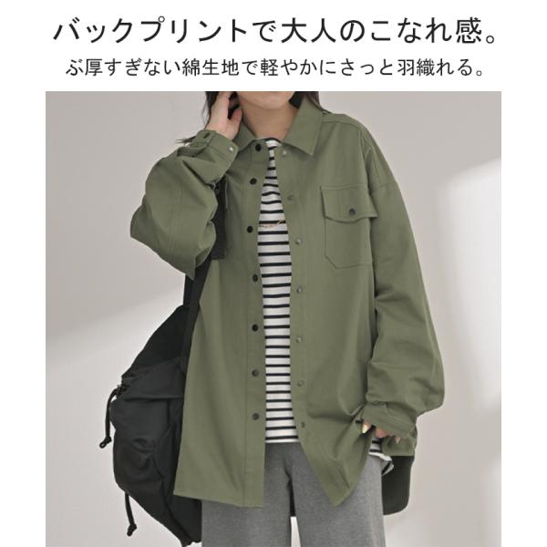 ジャケット バック プリント レディース アウター 綿100% ロング 襟 無地 長袖 羽織 ライトアウター ミリタリージャケット