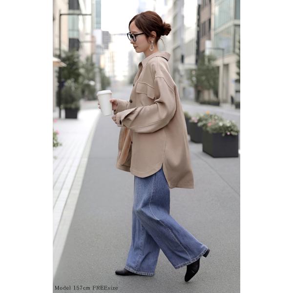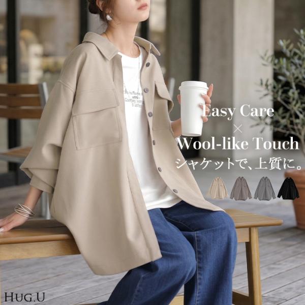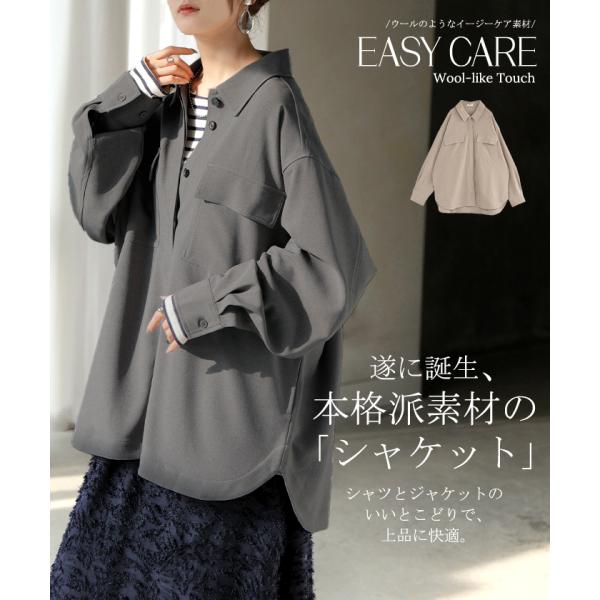 シャツ ジャケット イージーケア ウールライク レディース トップス アウター 洗濯機 可 シワになりにくい ロング ロングシャツ チュニック 長袖 無地 羽織