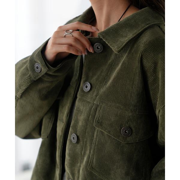 アウター ジャケット コーデュロイ レディース コート ブルゾン 襟 無地 長袖 羽織 コーデュロイジャケット チュニック オープンカラー ポケット