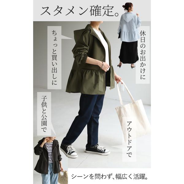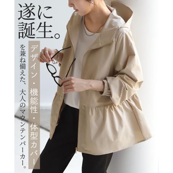 アウター 撥水 フリル マウンテンパーカー レディース パーカー ペプラム バックフリル ミリタリーコート