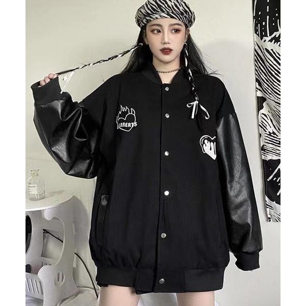 スタジャン オーバーサイズ ハートロゴ ビッグシルエット ルーズ スタジャン アウター ジャケット レディース メンズ