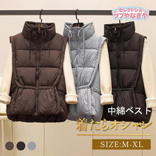 中綿ベスト レディース アウター 秋 冬 中綿入り スタンドカラー ショート丈 ベスト アウター 大きいサイズ きれいめ 暖かい シンプル ゆったり 体型カバー 防寒