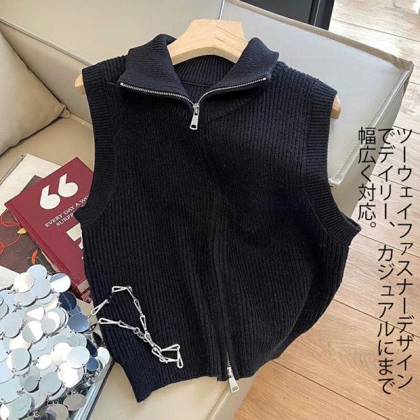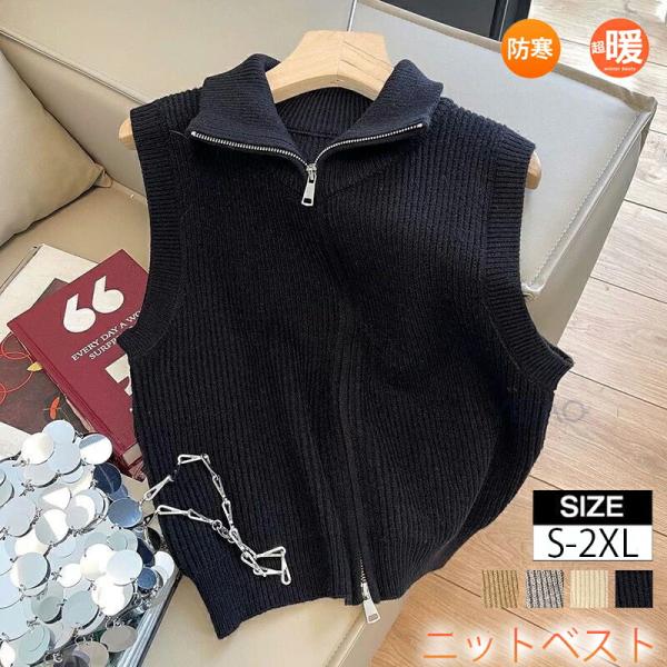 ニットベスト レディース セーターベスト ツーウェイファスナー ノースリーブ 秋 前開き 大人 女子 暖かい 大きいサイズ ゆったり おしゃれ ベスト セーター